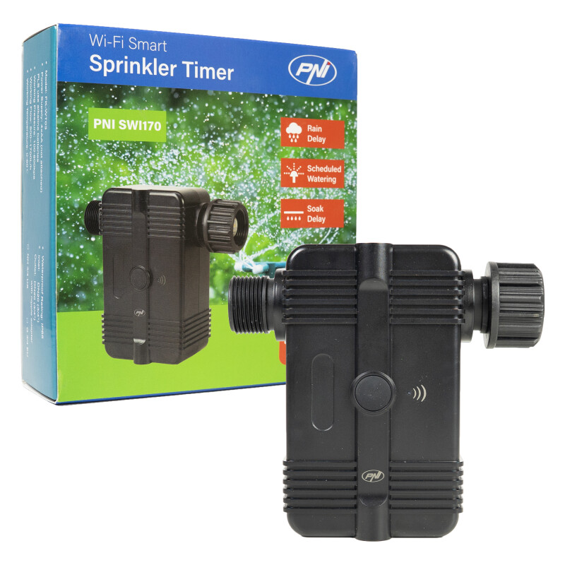 Programmateur d'arrosage intelligent PNI SWI170, Wi-Fi, connexion 3/4 ou 1/2, 1700 l/h, contrôle via l'application Tuya, compatible avec Amazon Alexa et Google Home
