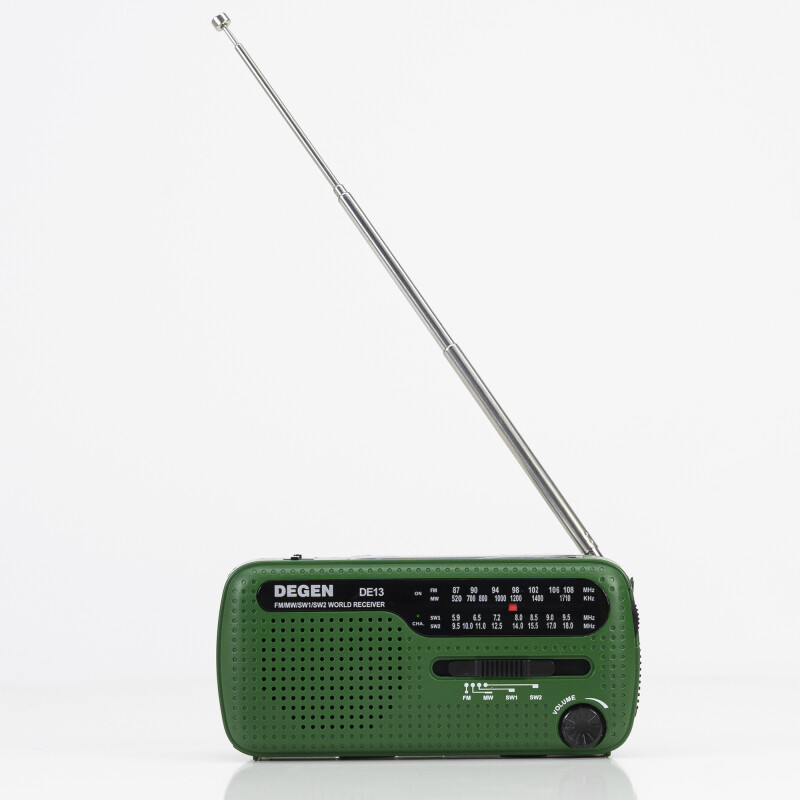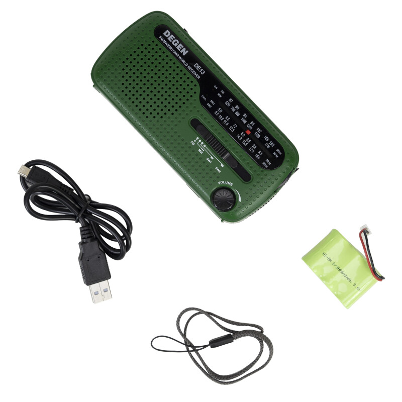 Radio d'urgence PNI Degen DE13, FM-AM-SW, avec énergie solaire, accumulateur ou piles AAA, fonctions SOS, lampe de poche, signal lumineux