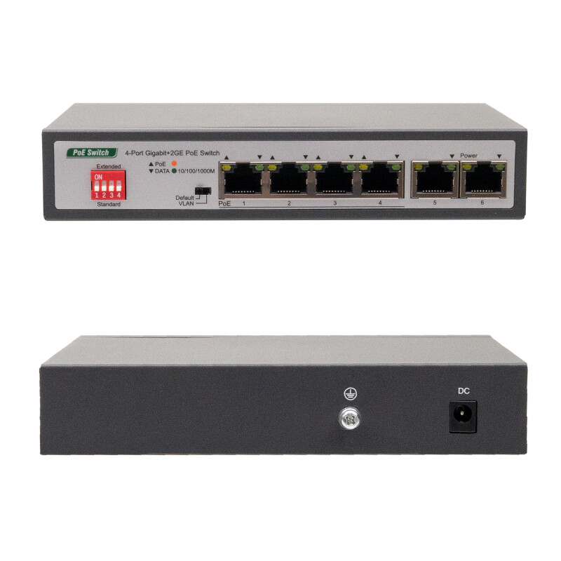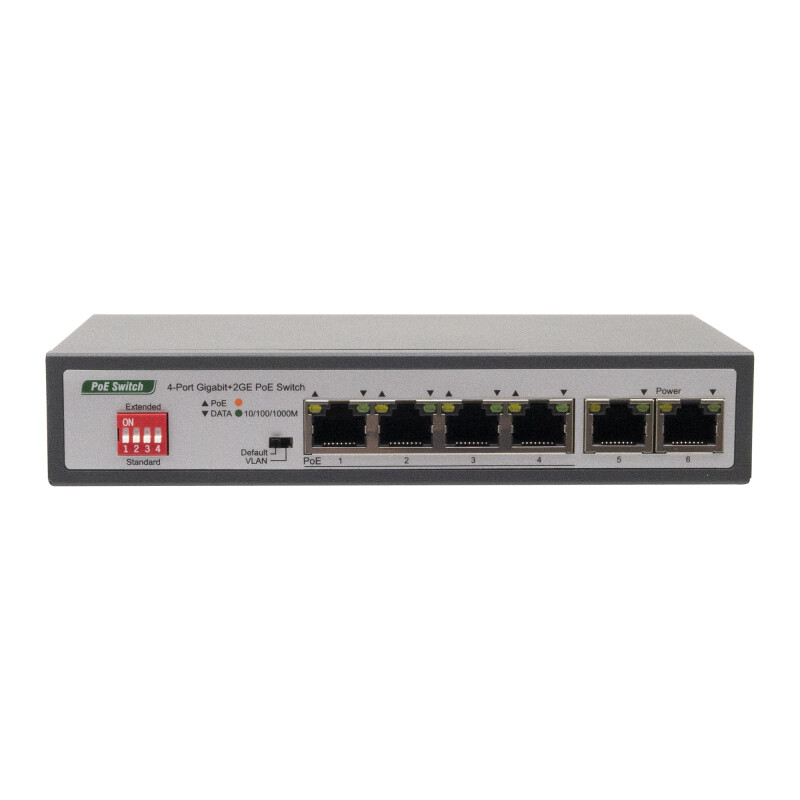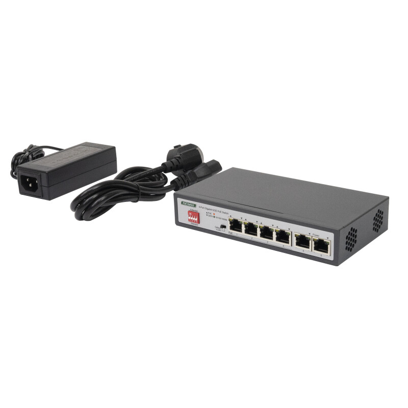 Switch PNI SWPOE243, POE, 6 x 10/100/1000 Mbps, Gigabit, dont 4 ports PoE, boîtier métallique